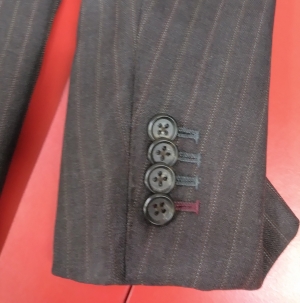 男性のジャケットの袖丈を肩の方で詰めました、袖口にはボタンホールがあり出来ません、着丈を5p詰めました