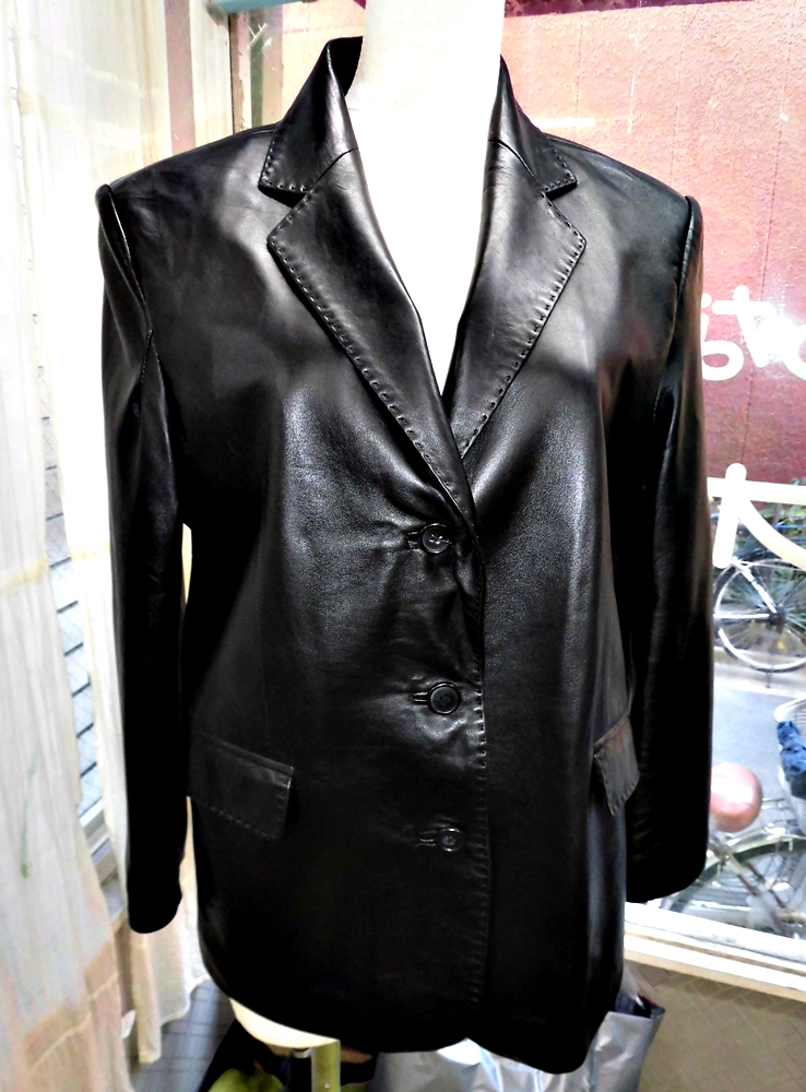 皮革のブレザーのリメイク 肩幅を2センチ詰め、衿を小さく